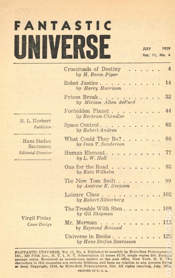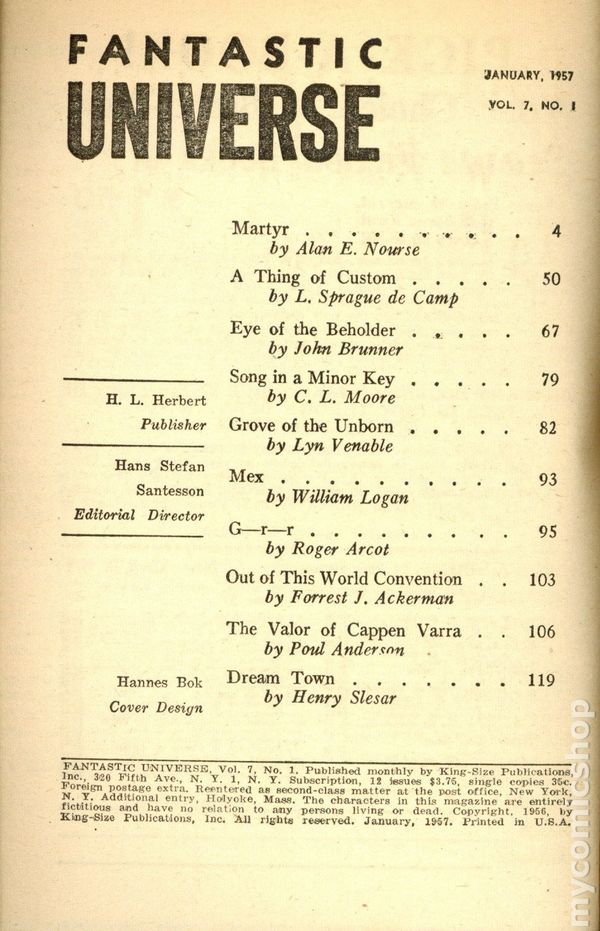 $20 Fantastic Universe Science Fiction Pulp 1958 Fine Clicking on the links to the eBay listings shown above and then making a purchase may result in MyComicShop earning a commission from the eBay Partner Network.
