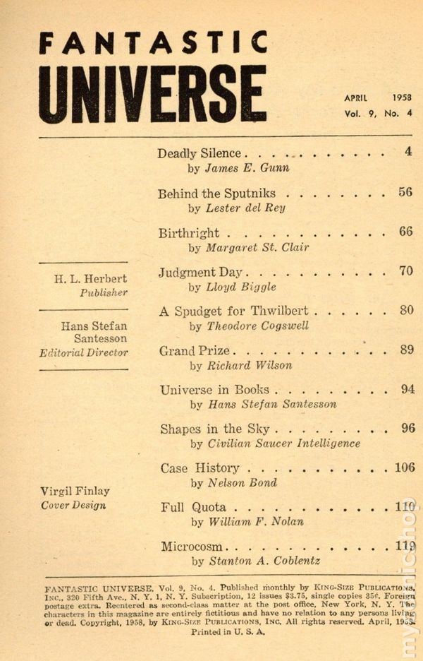 Vol. 9, No. 4 - April , 1958. 5.5" x 7.5", 128 pages, B&W. Cover price $0.35.