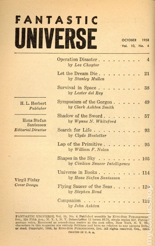 $35 Fantastic Universe Science Fiction 10/1958 Pulp thrills Virgil Finlay Medusa $75 Fantastic Universe Pulp Medusa Cover FN+ oct 1958 Clicking on the links to the eBay listings shown above and then making a purchase may result in MyComicShop earning a commission from the eBay Partner Network.