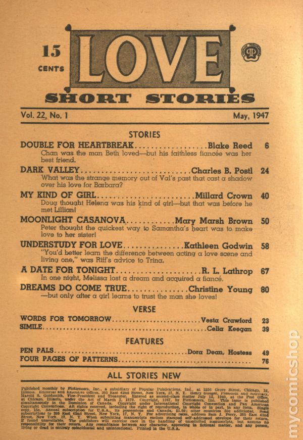 Love Short Stories (1940-1955 Popular Publications) Pulp comic books