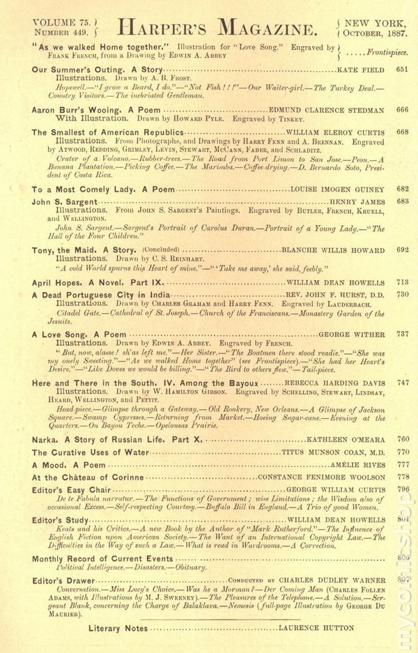 Published Oct 1887 by Harper & Brothers Publish.