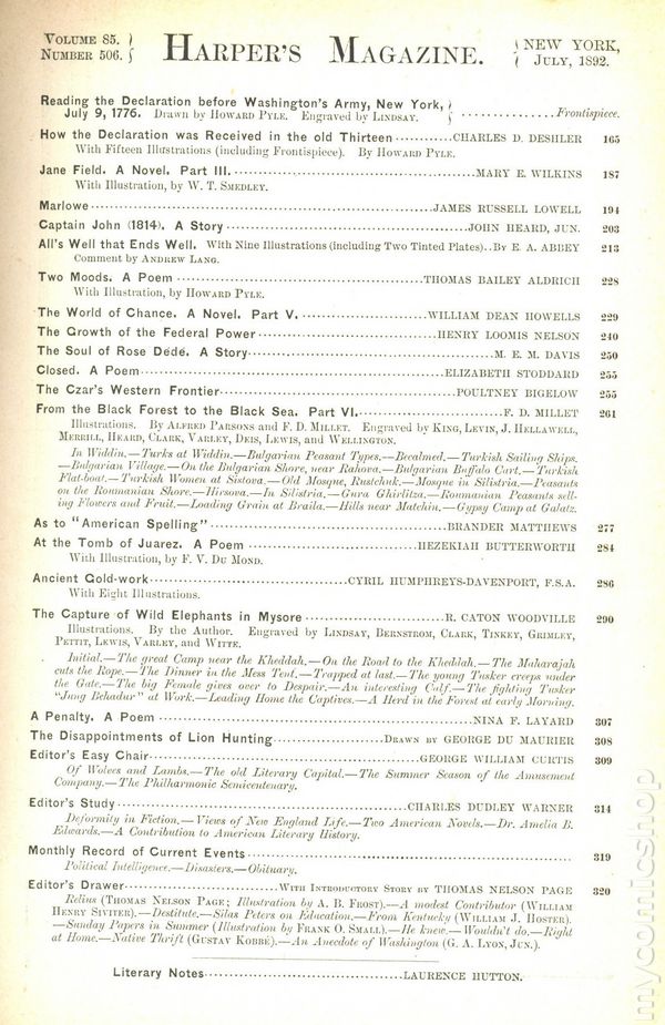 Published Jul 1892 by Harper & Brothers Publish.
