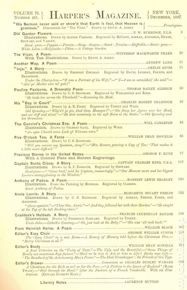 Published Dec 1887 by Harper & Brothers Publish.