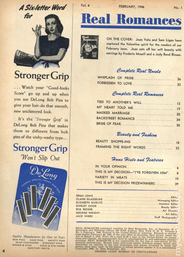 Published Feb 1946 by Real Romances Inc..