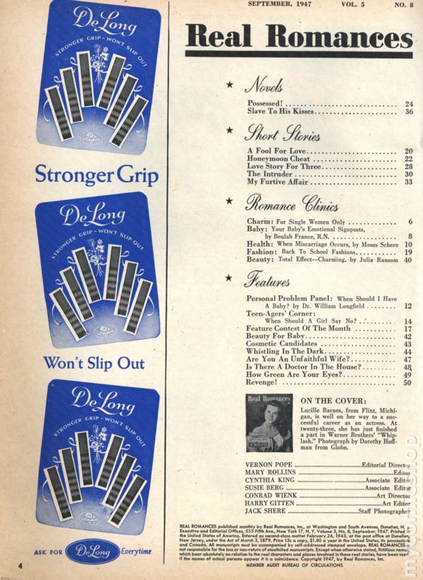 Published Sep 1947 by Real Romances Inc..