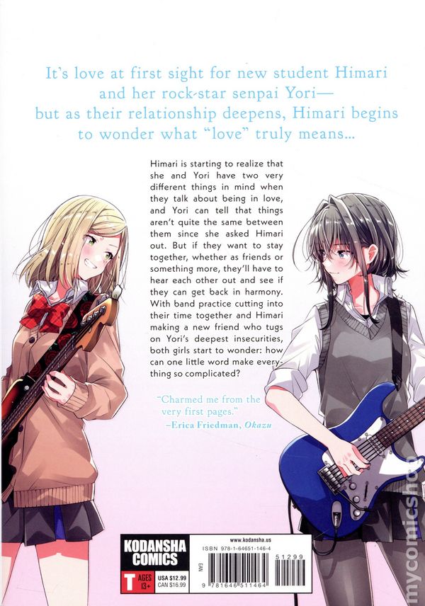 Volume 2 - 2nd and later printings. Story and Art by Eku Takeshima. Translated by Kevin Steinboch. Himari is starting to realize that she and Yori have two very different things in mind when they talk about being in love, and Yori can tell that things arent quite the same between them since she asked Himari out. But if they want to stay together, whether as friends or something more, theyll have to hear each other out and see if they can get back in harmony. With band practice cutting into their time together and Himari making a new friend who tugs on Yoris deepest insecurities, both girls start to wonder: how can one little word make everything so complicated? Softcover, 6-in. x 8-in., 180 pages, B&W. Teen (13+) Cover price $12.99.
