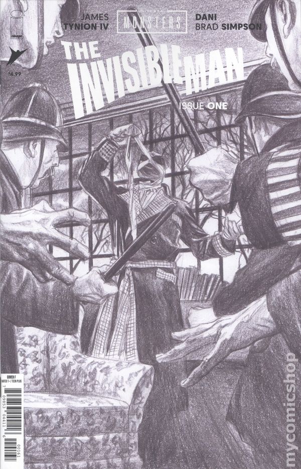 Blank Sketch Cover. Written by James Tynion IV. Art by Dani, Brad Simpson. MINISERIES PREMIERE JAMES TYNION IV & DANI RESSURECT A HORROR ICON! ** Jack Griffin has always been invisible to the people around him—at least in his own mind. But when an experimental breakthrough presents a path to make his dreams of invisibility a reality, no one—not even the woman he loves—will stand in his way. Witness Griffin's legendary descent into madness as his humanity fades away and the monster inside is revealed, leaving only...THE INVISIBLE MAN! The horror dream team of JAMES TYNION IV (SOMETHING IS KILLING THE CHILDREN, EXQUISITE CORPSES) and DANI (The Low, Low Woods**) reveal their vision for one of the most horrific monsters in cinematic history! 32 pages, full color. Rated T+ Cover price $4.99.