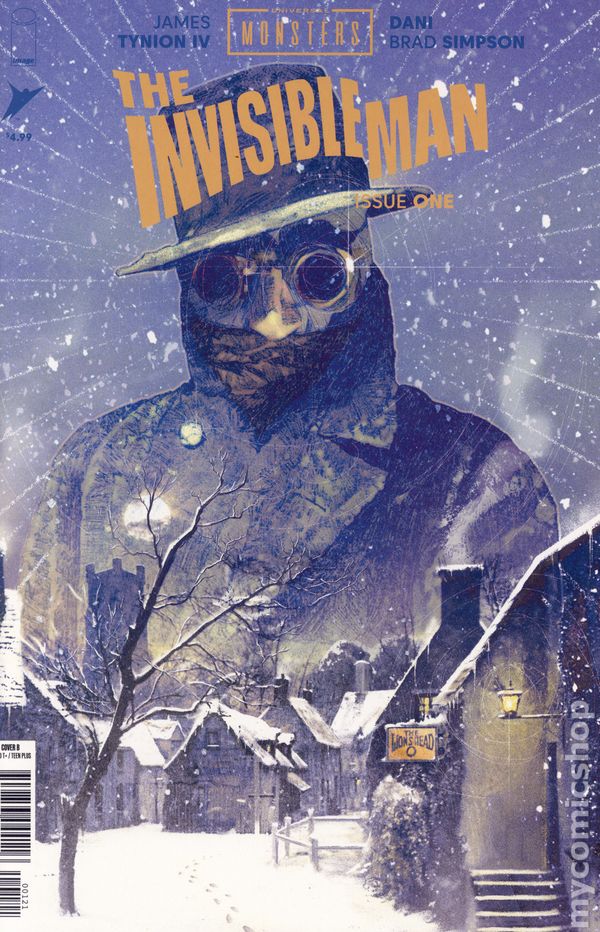 Written by James Tynion IV. Art by Dani, Brad Simpson. Cover by Joshua Middleton. MINISERIES PREMIERE JAMES TYNION IV & DANI RESSURECT A HORROR ICON! ** Jack Griffin has always been invisible to the people around him—at least in his own mind. But when an experimental breakthrough presents a path to make his dreams of invisibility a reality, no one—not even the woman he loves—will stand in his way. Witness Griffin's legendary descent into madness as his humanity fades away and the monster inside is revealed, leaving only...THE INVISIBLE MAN! The horror dream team of JAMES TYNION IV (SOMETHING IS KILLING THE CHILDREN, EXQUISITE CORPSES) and DANI (The Low, Low Woods**) reveal their vision for one of the most horrific monsters in cinematic history! 32 pages, full color. Rated T+ Cover price $4.99.