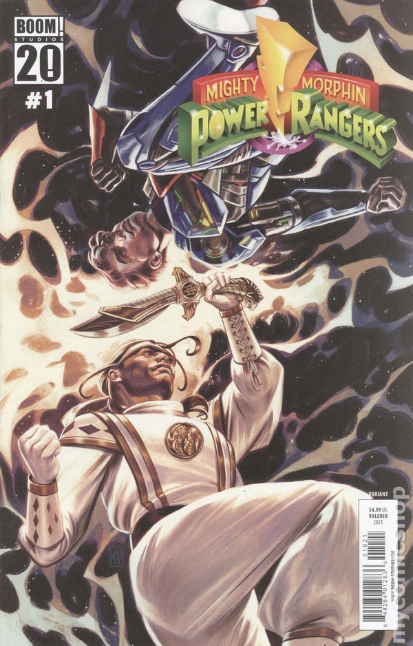Limited 1 for 5 Retailer Incentive Variant Cover. Written by Fabian Nicieza; Frank Lovece. Art by Tod Smith; John Ross. Cover by Keyla Valerio. Its a Power Rangers and VR Troopers double feature! This flipbook facsimile features two classic stories in one book! Follow Ninja White Ranger Tommy as he faces off against Lord Zedd and the Loan Sharks in this 10-page archival adventure, then flip the book to follow VR Trooper Ryan as he rushes to reunite a son with his kidnapped father! 28 pages, full color. Cover price $4.99.