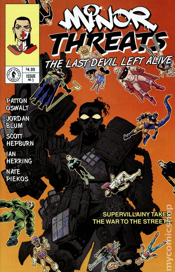 (W) Patton Oswalt; Jordan Blum (A) Scott Hepburn (CA) Scott Hepburn (C) Ian Herring The hit superhero saga that’s Watchmen meets The Wire returns from Patton Oswalt and Jordan Blum, showrunners of Marvel’s M.O.D.O.K on HULU, and superstar artist Scott Hepburn (Tom Morello’s Orchid).The Minor Threats have gone underground, standing on their last leg as they fight for the future of Twilight City. Frankie Follis aka the supervillain Playtime desperately needs a leader for her new ragtag team of rejects and sets her sights on recruiting the greatest superhero of all—The Searcher! After traveling to Meteor Falls she instead finds a recently depowered shell of the former champion of justice. The Searcher: no more. On top of that Frankie, Scalpel and the others are attacked by an all-new, all-deadly version of The Action. And if that wasn't enough, the team-up no one asked for—Brain Tease and Barfly pull a heist! And folks, it doesn't go well . . .• Five-issue series. 32 pages, full color, not rated. Cover price $4.99.