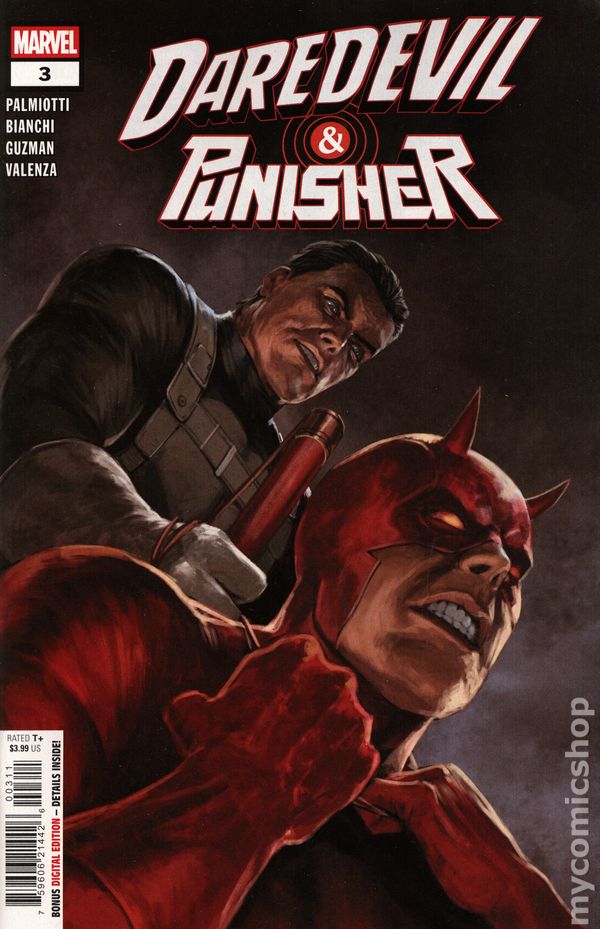 (W) Jimmy Palmiotti (A) Tommaso Bianchi, Gabriel Guzman (CA) Skan Spurred by the power vacuum left by the absent GNUCCI CRIME FAMILY, an unprecedented crime wave has flooded the streets of New York! Left to face the rising violence and vitriol, DAREDEVIL and THE PUNISHER will have to put aside their differences to keep the criminals of New York from consuming it altogether! 32 pages, full color, rated T+. Cover price $3.99.