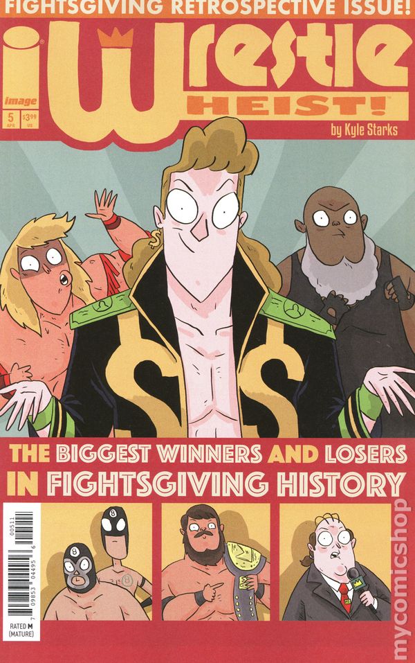 (W) Kyle Starks (A) Kyle Starks, Vladimir Popov (CA) Kyle Starks Its part one of the two-part WRESTLE HEIST finale and its HEIST TIME! Our intrepid heroes, wronged by corrupt wrestling promoter Buddy Hansen, begin the process of robbing the biggest show of the year–FIGHTSGIVING! How do five former pro-wrestlers rob a giant wrestling show? Youll have to read to find out! Hopefully everything goes smoothly! Join writer/artist KYLE STARKS (I HATE THIS PLACE, Peacemaker:Tries Hard, Rick and Morty) and colorist VLADIMIR POPOV (Where Monsters Lie) as they lay the smackdown with an immense amount of comic book fun in WRESTLE HEIST #4! 28 pages, rated M, full color Cover price $3.99.