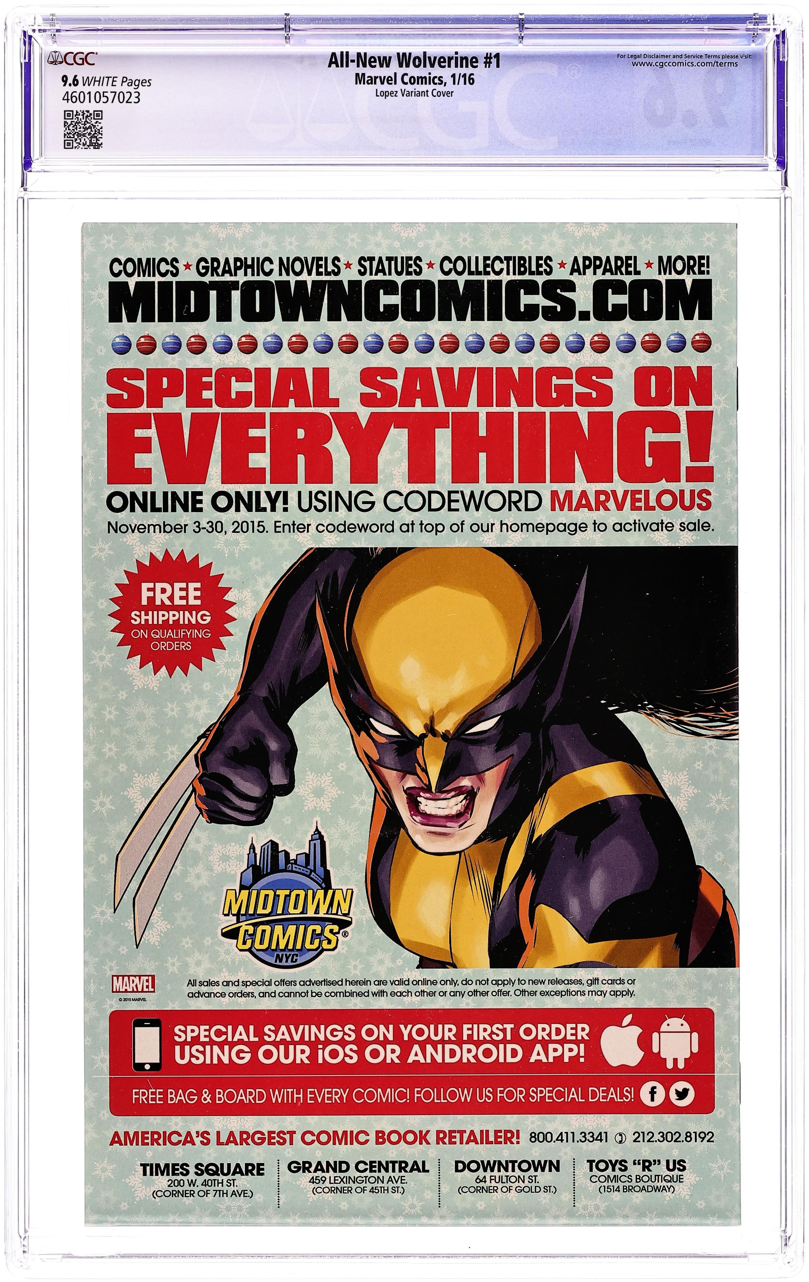 Limited 1 for 25 Retailer Incentive Variant Cover. Written by Tom Taylor. Art by David Lopez and David Navarrot. Cover by David Lopez. LAURA KINNEY EMBRACES HER DESTINY. HERE! COMES! WOLVERINE! X-23 was created to be a weapon and for a time, that's all she was. But with the help of her mentor, LOGAN-the original WOLVERINE-she escaped that dark past. Tragically, Logan has fallen, but Laura will continue in his footsteps as a hero. Recent events have her doing everything in her power to keep those around her alive, as violent forces are hell-bent on mutual destruction. If anyone can stop them, it's Laura. She is the best there is at what she does. She is THE ALL-NEW WOLVERINE. 44 pages, full color. Parental Advisory Cover price $4.99.