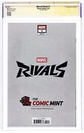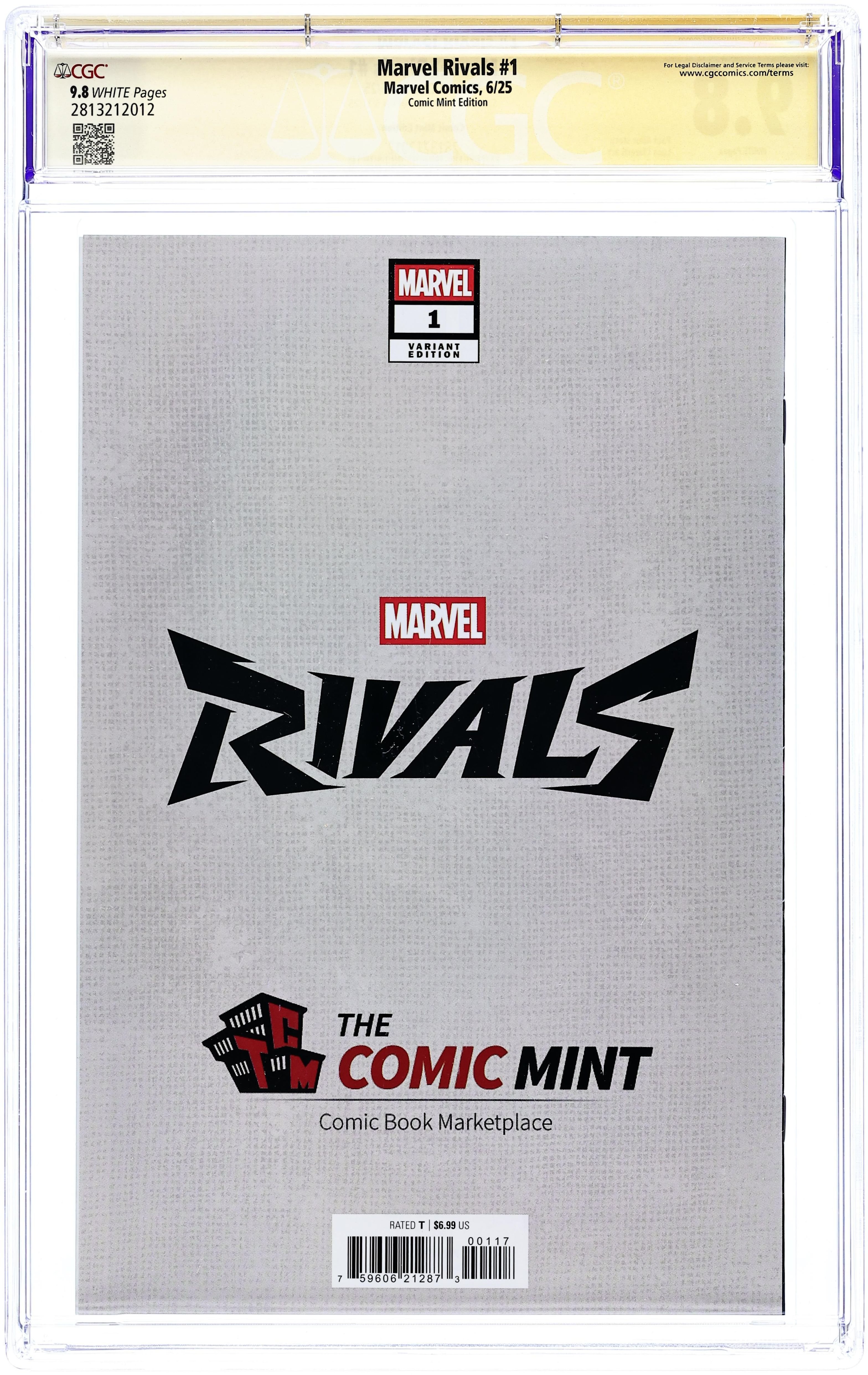The Comic Mint Exclusive Variant Cover by Alan Quah - limited to 1000 copies. Written by Paul Allor. Art by Luca Claretti. SPINNING OFF THE BRAND NEW HIT VIDEO GAME SENSATION! Tokyo 2099. The time rift has disrupted the Web of Life and Destiny, leaving the world's heroes to battle it out over the best way to fix it. One group, led by Peni Parker, wants to plug the Web into Cyberspace to repair it. The other group, led by Spider-Man, favors a more conservative approach of using Chronovium to strengthen the web and allow it to repair itself. The time rift makes rivals out of us all, but which team will overtake the other? Collecting the Marvel Rivals Infinity Comic (2024) #1-6 for the first time in print! 48 pages, full color. Rated T Cover price $6.99.