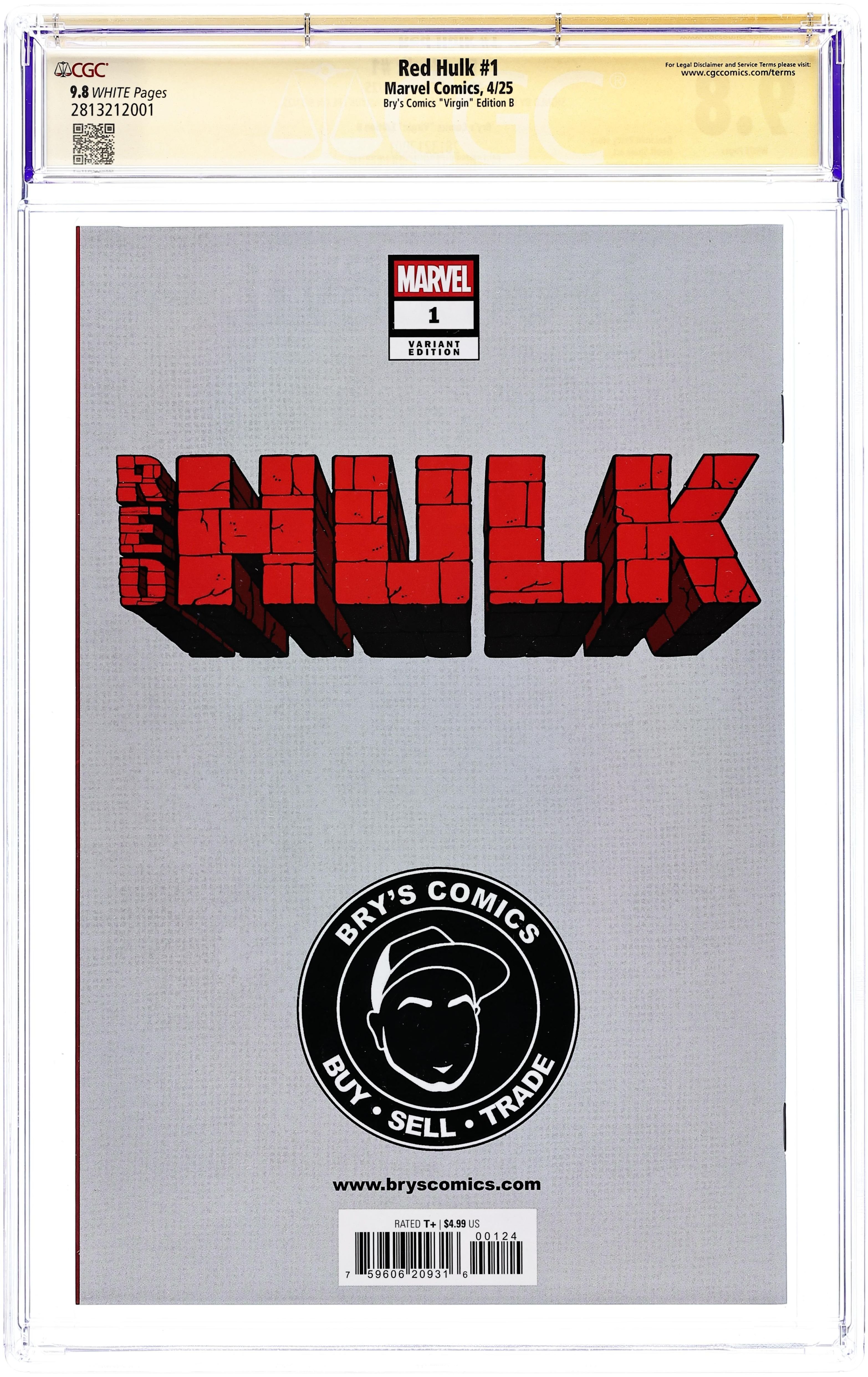 Bry's Comics Exclusive Virgin Cover by Inhyuk Lee - limited to 1000 copies. Written by Benjamin Percy. Art by Geoff Shaw. RED HULK RAGES INTO ONE WORLD UNDER DOOM! •THUNDERBOLT ROSS - in a cell deep below the ground - is a prisoner of DOCTOR DOOM And he is not alone. Brilliant military, criminal and political minds have been gathered against their will in a prison complex that serves as a "THINK TANK" to help carry out Doom's plan for global domination. But the RED HULK has other plans! Guest starring MACHINE MAN and DEATHLOK! 32 pages, full color. Rated T+ Cover price $4.99.