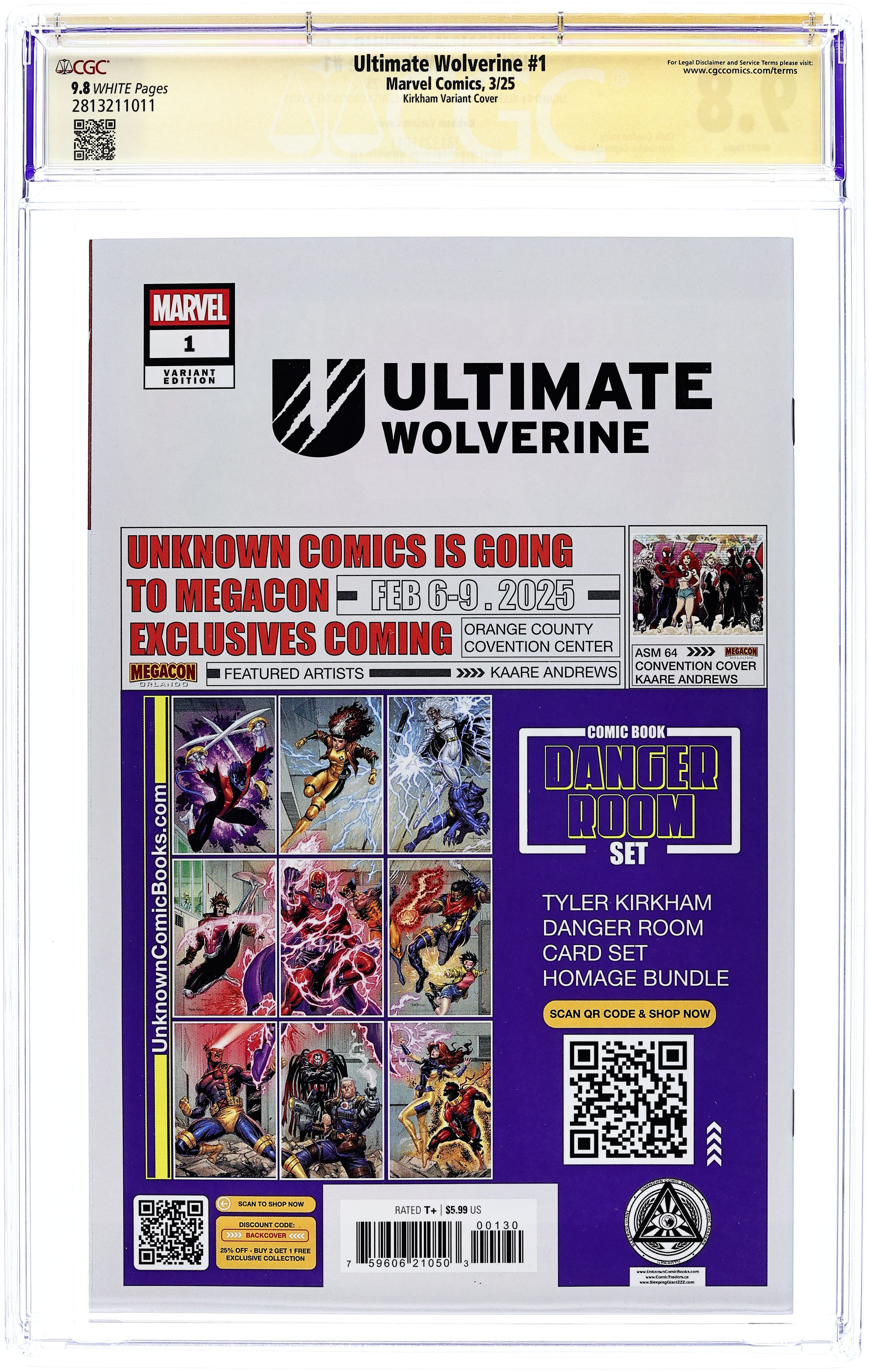 Comics Illuminati (Unknown Comic Books, Comic Traders, and Sleeping Giant) Exclusive Variant Cover by Tyler Kirkham. Written by Christopher Condon. Art by Alessandro Cappuccio. THE MAKER'S ULTIMATE WEAPON! From rising star Chris Condon (That Texas Blood) and MOON KNIGHT powerhouse artist Alessandro Cappuccio comes the story of the ULTIMATE WOLVERINE! In order to maintain control of their corner of the Maker's world, three members of his council - Magik, Colossus and Omega Red - deploy their most lethal asset: The Winter Soldier! But WHO is the weapon behind the mask? 32 pages, full color. Rated T+ Cover price $5.99.