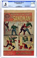 Cover art by Steve Ditko. First appearance of the Sandman in Nothing Can Stop The Sandman!, script by Stan Lee, art by Steve Ditko; The Sandman tries to hide from police in the high school where Peter Parker goes to school. Intro Betty Brant and Liz Allen. Reprinted in Marvel Tales # 141. 36 pgs. $0.12. Cover price $0.12.