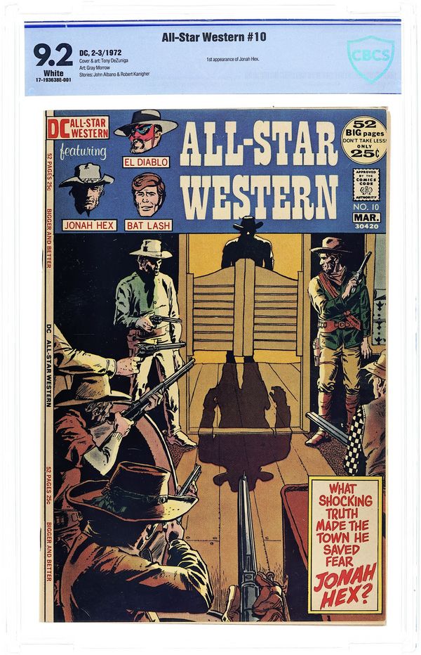 Giant-size issue. Final issue of the series (title continues as Weird Western Tales). 2nd appearance Jonah Hex in "The Hundred Dollar Deal!" Script by John Albano, art by Tony DeZuniga. El Diablo stars in "Satan's Sanctuary." Script by Sergio Aragones and Len Wein, art by Gray Morrow. Reprints: Pow-Wow Smith stars in "The Buffalo-Hide Bandits!" (art by Carmine Infantino) and "Bat Lash" (script by Sergio Aragones and Denny O'Neil, art by Nick Cardy). DeZuniga cover. Cover price $0.25.