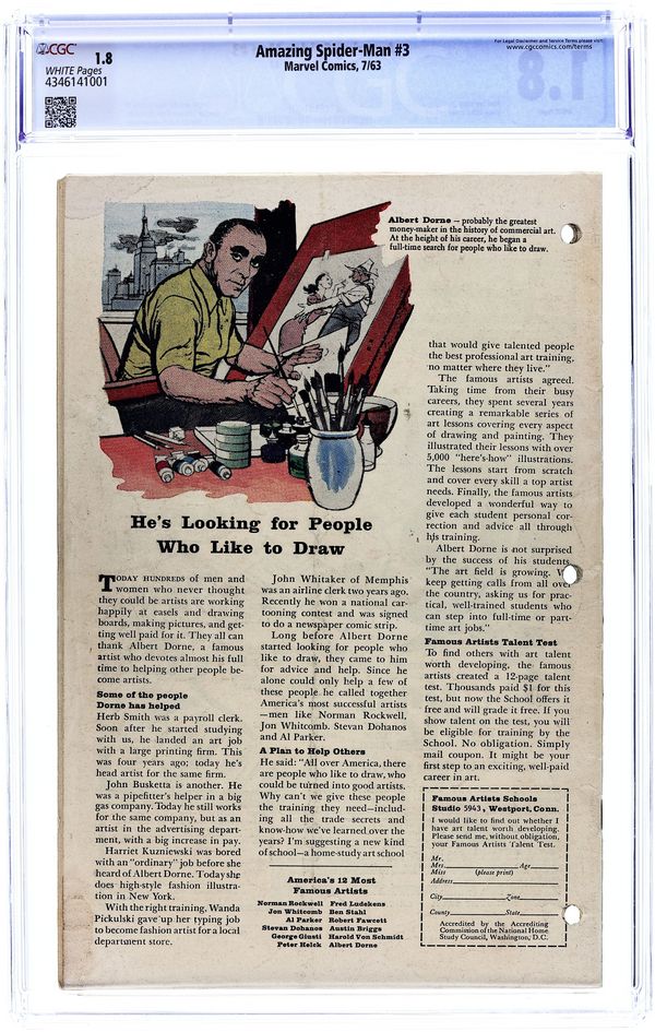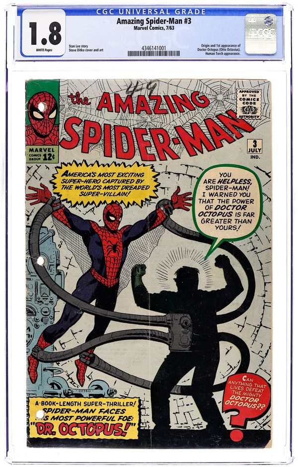 Cover art by Steve Ditko. First appearance of Dr. Octopus in Spider-Man Versus Doctor Octopus, script by Stan Lee, art by Steve Ditko; When an experiment goes wrong, Otto Octavius gains control of his robotic arms and decides to take over an atomic facility, but Spider-Man stops him. Spider-Man pin-up page by Ditko. Reprinted in Marvel Tales # 140. First issue with a letters column (including a letter by MyComicShop president Buddy Saunders!). 36 pgs. $0.12. Cover price $0.12.