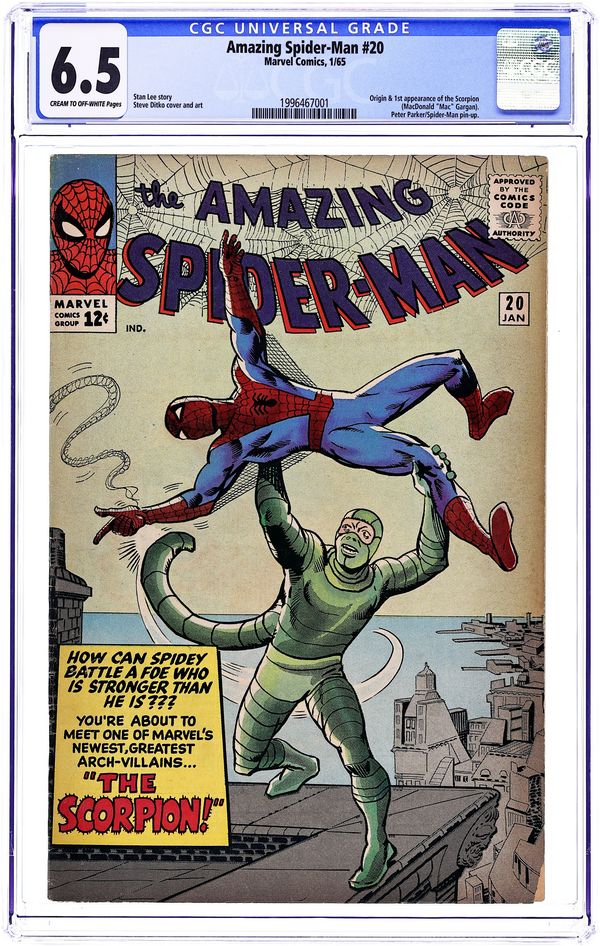 Cover art by Steve Ditko. First appearance of the Scorpion in The Coming of the Scorpion!, script by Stan Lee, art by Steve Ditko; J. Jonah Jameson pays Dr. Stillwell to turn Mac Gargan into the Scorpion to try to capture Spider-Man. Stillwell's formula makes Gargan become more evil than he originally was and the Scorpion goes on a rampage and is finally stopped by Spider-Man. Reprinted in Marvel Tales # 15 and 158. 36 pgs. $0.12. Cover price $0.12.
