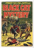 Cover by Lee Elias. Stories and art by Bob Powell, Howard Nostrand, Moe Marcus, Rocco "Rocke" Mastroserio, and Warren Kremer. Former superhero comic Black Cat becomes a showcase for Harvey's unique brand of pre-Code horror. An American in India wants to murder his native wife, but her pet panther protects her. A chess-lover kills for a special chess set, then is forced to play chess with Death. A sailor is tried for abandoning a sinking ship by the ghosts of his crew. My Husband The Cat; Truth Is Stranger; Devil Drums; The Rage in Suspense; Black Knight; Saucer; Weird Facts; Eternity! 36 pages, full color. Cover price $0.10.