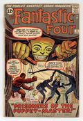Starts Dec 15 Cover pencils by Jack Kirby, inks by Dick Ayers. First appearance of Puppet Master and Alicia Masters in "Prisoners of the Puppet Master!" (making this the fourth issue in a row that has either "prisoners" or "captives" in the title!), script by Stan Lee, pencils by Jack Kirby, inks by Dick Ayers; The Puppet Master tests his radioactive clay that gives him the power to remotely control people that are modeled in the clay. The Human Torch character profile. "The Hands of the Puppet Maker" Part 2; The Puppet Master gets the Thing under his command and imprisons the Invisible Girl; He then sends the Thing and Alicia Masters to infiltrate the Baxter Building. "The Lady and the Monster!" Part 3; While acting under the Puppet Master's influence, the Thing is subjected to one of Mister Fantastic's potions that changes him back to Ben Grimm. "Face-to-face with the Puppet Master!" Part 4; The Puppet Master stages a jailbreak just to prove his might. Death of a Puppet! Part 5; The jail break is stopped by the Fantastic Four and the Puppet Master falls to what seems to be his death. 36 pgs. $0.12. Cover price $0.12.