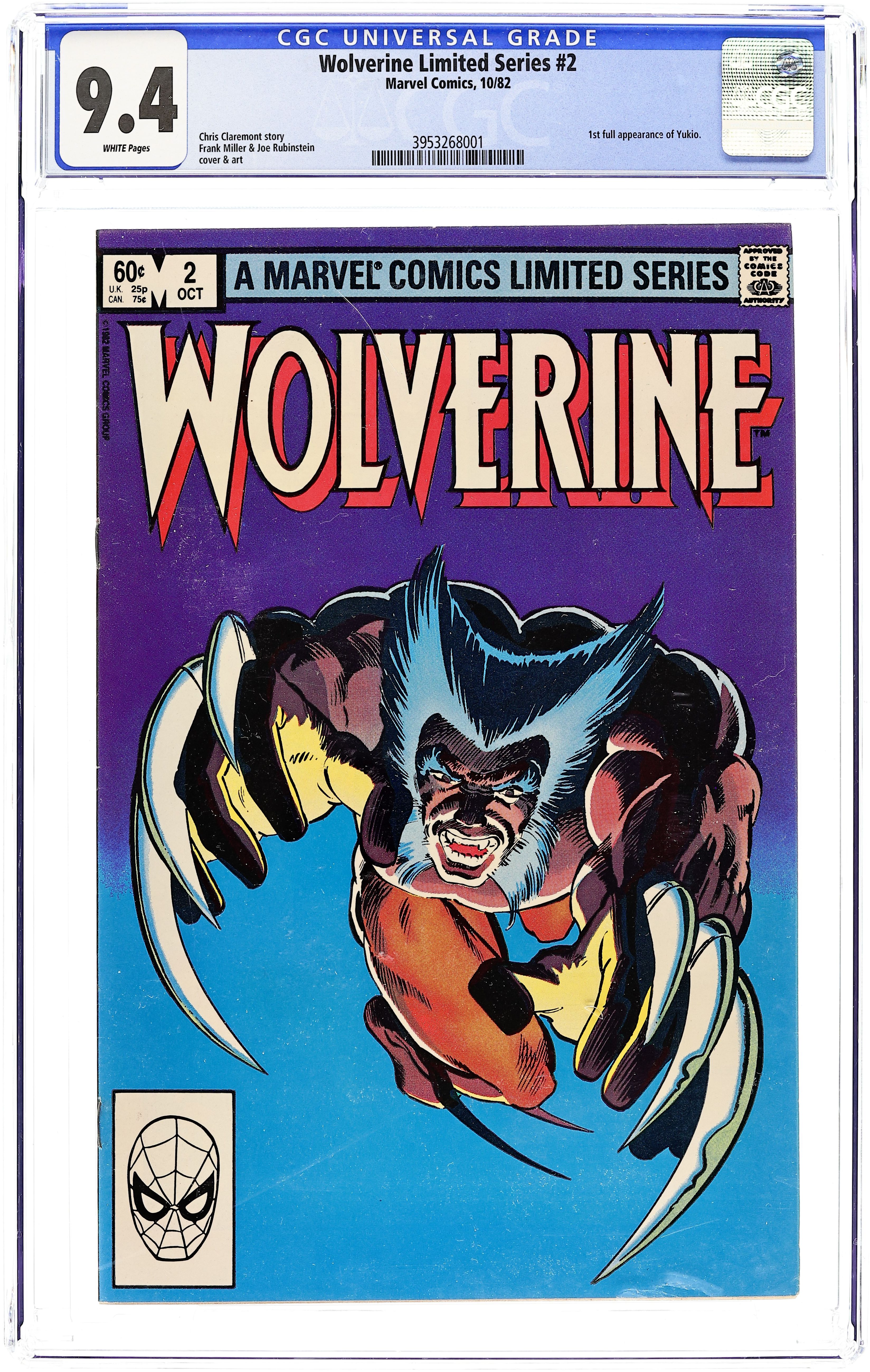 Direct Edition. Wolverine's Japanese adventure concludes in "Honor." Script by Chris Claremont, pencils by Frank Miller, inks by Joe Rubinstein. Miller/Rubinstein cover. Cover price $0.60.