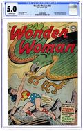Cover pencils by Irwin Hasen, inks by Bernard Sachs. "The Olympics of Terror," script by Robert Kanigher, art by Harry G. Peter; Deception tries to get the other planets to help him invade Earth, but Wonder Woman challenges all their champions to Olympic style games. "The Talking Tiara," script by Robert Kanigher, art by Harry G. Peter; Origin of Wonder Woman's magic tiara which allows her to understand all languages. The Dazzling Dolls text article. "The Missing Wonder Woman," script by Robert Kanigher, art by Harry G. Peter; Wonder Woman gets amnesia and has to discover her own secret identity. Wonder Women of History Gail Laughlin bio by Julius Schwartz. 36 pages, Full Color. Cover price $0.10.